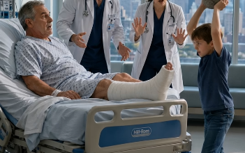 La puerta de la habitación del hospital se abrió de golpe y un niño sin hogar entró corriendo con una piedra en la