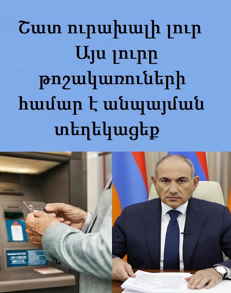 Ուստի, եթե ձեր հարազատների կամ ծանոթների մեջ կան թոշակառուներ, անպայման տեղեկացրեք նրանց այս լուրի մասին։