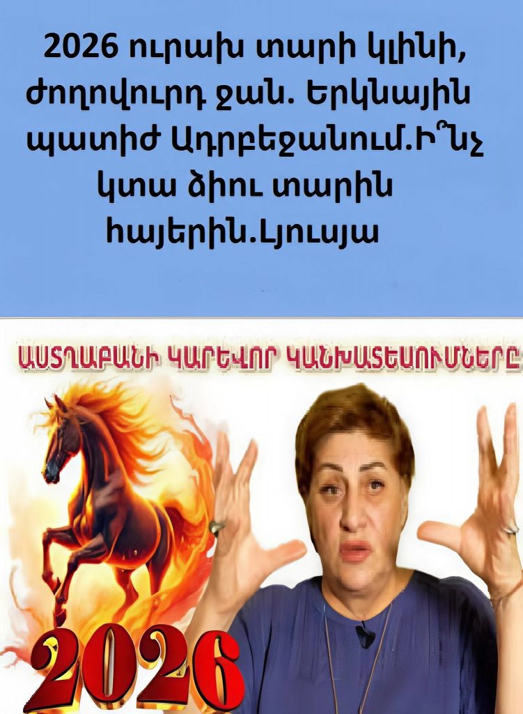 2026 թվականին սպասվում են տարօրինակ բնական երևույթներ, կտրուկ քաղաքական ցնցումներ, ներքին քայքայում։ Ադրբեջանում կսկսի բացահայտվել այն, ինչ երկար ժամանակ փորձում էին թաքցնել։ Սա մեկ հարված չի լինելու, այլ շղթայական ռեակցիա։ Ներքին փլուզում, անվստահություն, խուճապ։