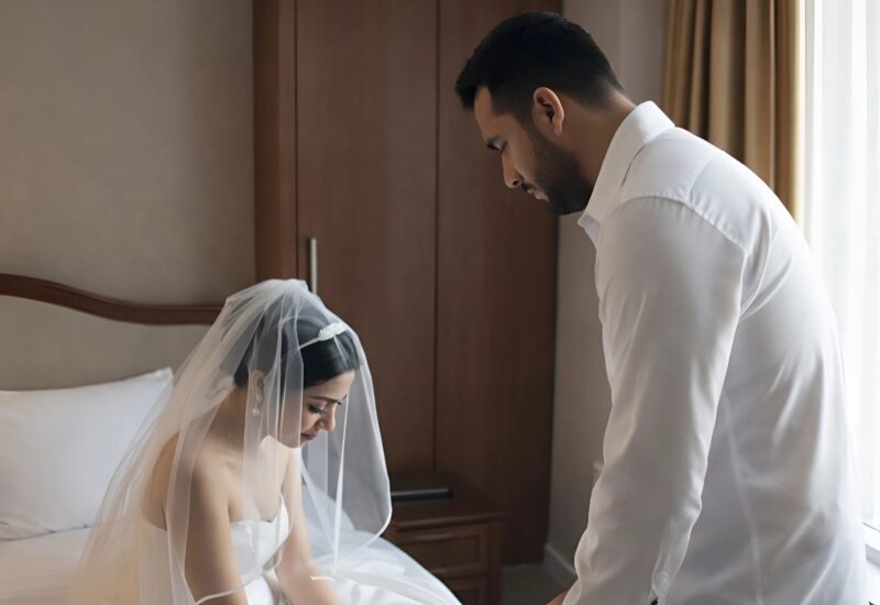 Հարսանիքից հետո երեկոյան մենք մենակ էինք։ Սենյակը լուռ էր, ողողված մեղմ լույսով։ Մարկը կանգնած էր իմ կողքին՝ սպիտակ վերնաշապիկով, տեսանելիորեն լարված, կարծես հետաձգում էր անխուսափելի զրույցը։ Երբ ես նայեցի ներքև և նայեցի «այնտեղ», ամեն ինչ իր տեղը ընկավ։