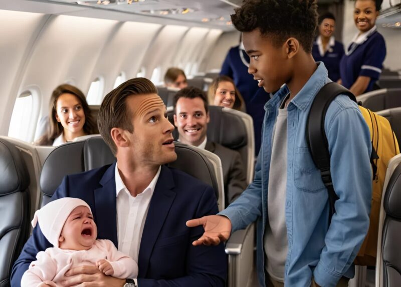 El bebé del multimillonario lloraba sin parar en el avión… hasta que un adolescente desconocido se atrevió a hacer algo increíble.