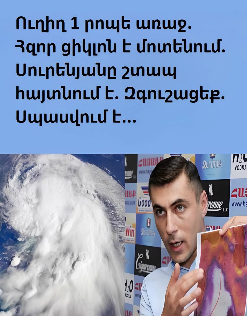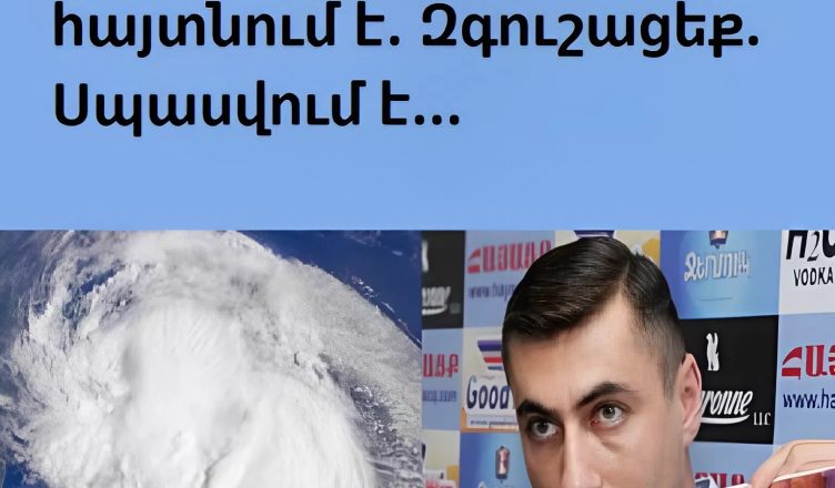 Մի քանի րոպե առաջ ստացված տեղեկությունը բառացիորեն շոկի մեջ է գցել անգամ փորձառու օդերևութաբաններին։ Անսպասելի մթնոլորտային երևույթները, որոնք դեռ երեկ թվում էին սովորական սեզոնային տատանումներ, այժմ վերածվում են վտանգավոր երևույթի, որը կարող է ազդել հազարավոր մարդկանց կյանքի վրա։ Հայտնի մասնագետ Գագիկ Սուրենյան-ը շտապ նախազգուշացնում է, որ իրավիճակը դուրս է գալիս սովորական վերահսկողությունից։