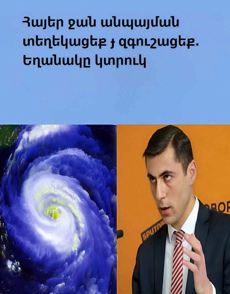 Առաջիկա օրերը կարող են դառնալ փորձություն շատերի համար, սակայն պատշաճ պատրաստվածության դեպքում հնարավոր է խուսափել լուրջ հետևանքներից։ Հետևեք պաշտոնական տեղեկատվությանը, մի անտեսեք նախազգուշացումները և, ամենակարևորը, հոգ տարեք ձեր և ձեր մտերիմների անվտանգության մասին։