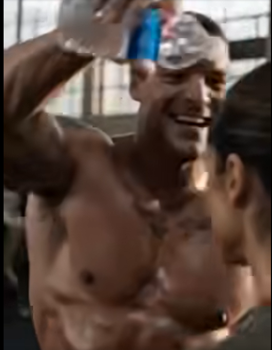 Finalmente, tomó una botella de agua, la abrió y bebió, intentando reunir sus pensamientos. En ese momento, uno de los soldados más corpulentos del lugar se acercó por detrás.
