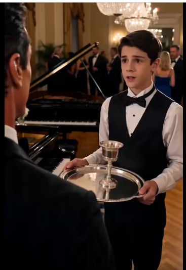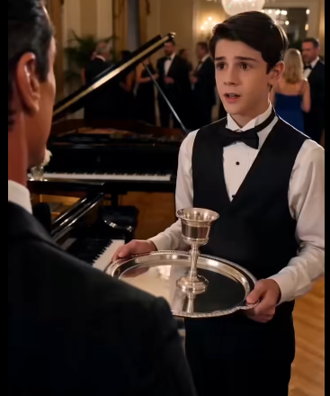 Vedle něj, téměř neviditelný pro třpytící se dav, stál hubený chlapec v dokonale vyžehlené číšnické uniformě. Nemohlo mu být víc než patnáct. Jeho boty byly čisté, ale na okrajích ošoupané, a jeho ruce — klidné, ale mladé — nesly stříbrný podnos plný třpytivých sklenic.